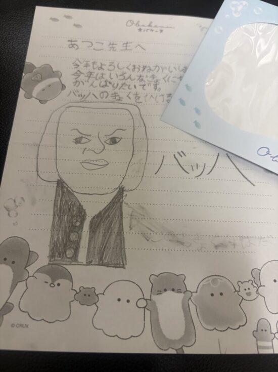 3歳から当ピアノ教室(横浜市旭区二俣川)に通っている8歳のMちゃんが、お年始のご挨拶で可愛いお手紙をくれました。